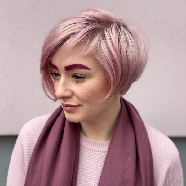 Pink Pixie Bob features a bold, vibrant pink hue paired with a chic, short bob cut. This playful and edgy hairstyle adds personality and fun, perfect for those wanting to make a confident, fashion-forward statement.