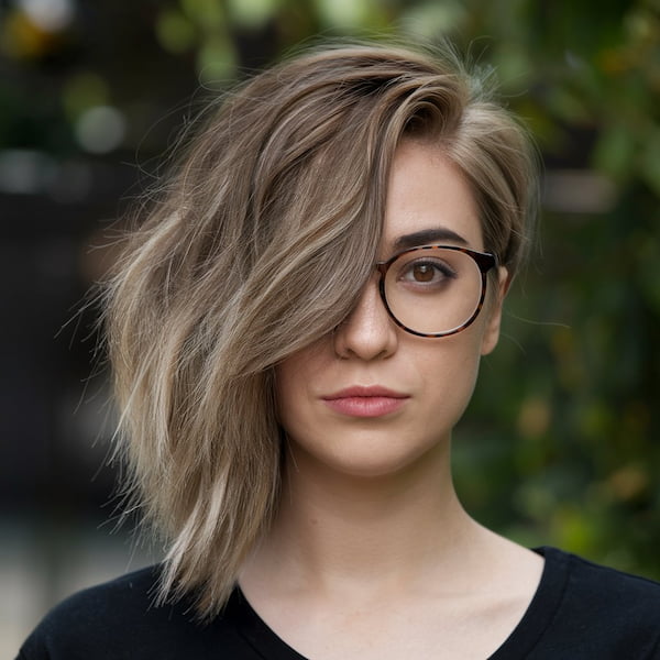 Textured Asymmetrical Bob features choppy layers and an uneven cut that adds movement and volume, creating a bold, edgy look. This style is perfect for those seeking a low-maintenance yet fashion-forward haircut with attitude.