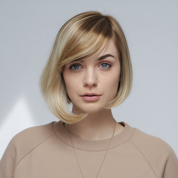 Side-Parted Perfect A-Bob features a sleek, angled cut with a deep side part that enhances facial features. This polished, modern style offers a sharp silhouette and elegant shape, making it a timeless choice for a sophisticated look.