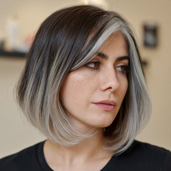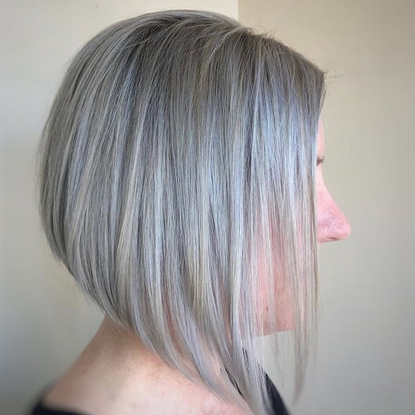 Gray Asymmetrical Bob is a chic and contemporary hairstyle that combines sleek gray tones with an uneven, angled cut. This look embraces natural or dyed gray hair, adding sophistication and edge through its stylish asymmetry.